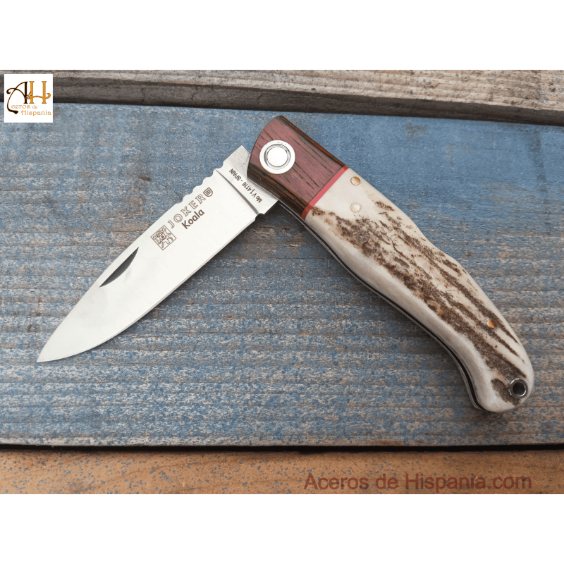 STAG HORN 8 CM LOCK-BACK FOLDING KNIFE BLACKWOOD BOLSTER AND STAINLESS BLADE
