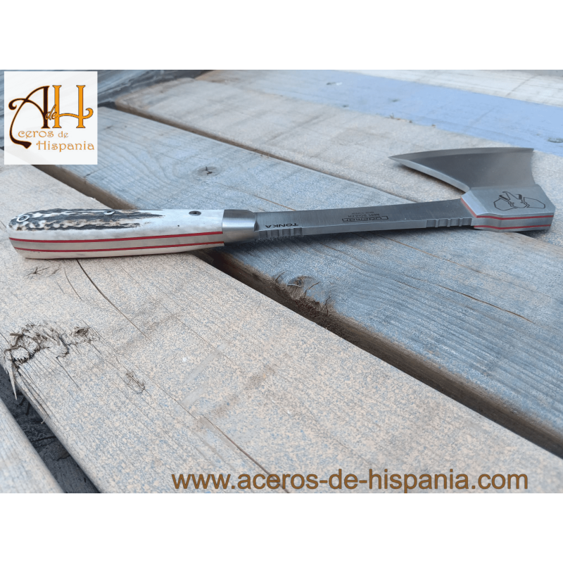 <p class="MsoNormal" style="text-align:justify;"><span style="color:#000000;"><span style="font-size:9pt;line-height:107%;font-family:Arial, 'sans-serif';"><span style="background:#FFFFFF;"><strong>Hacha Cudeman Tonka</strong> de caza, es una herramienta de alta calidad diseñada para los cazadores más exigentes. Con una hoja de 21 cm de longitud, mango de 15 cm y una longitud total de 36 cm, este hacha es perfecta para llevar en tus expediciones de caza.</span><br /><br /><span style="background:#FFFFFF;">Hoja de alta calidad: La hoja de este hacha está fabricada con acero Böhler N-695, lo que garantiza una dureza del acero de 59/60 HRc. Su hoja amolada y acabado satinado le dan un aspecto elegante y duradero.</span><br /><br /><span style="background:#FFFFFF;">Diseño robusto: La estructura enteriza de este hacha la hace resistente y duradera, perfecta para enfrentarse a las condiciones más adversas en el campo.</span><br /><br /><span style="background:#FFFFFF;">Mango ergonómico: El mango de ciervo pulido con separador rojo no solo le da un toque estético único, sino que también proporciona un agarre cómodo y seguro durante su uso. Fabricada en España.</span></span><span style="font-size:9pt;line-height:107%;"></span></span></p>