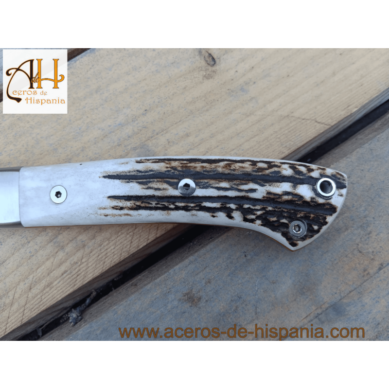 Mango ergonómico: El mango de ciervo pulido con separador rojo no solo le da un toque estético único, sino que también proporciona un agarre cómodo y seguro durante su uso. Fabricada en España.