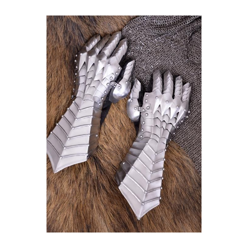 <p>Entregado en par</p>Los guanteles o guanteletes eran una parte indispensable de la armadura medieval para proteger las manos y muñecas de las espadas y hachas enemigas.<br /><br />