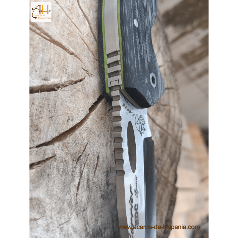 Navajas J&V de bolsillo, hoja de 8,8 cm de acero inoxidable 1.416 de dureza 56/58 HRc. Material de la empuñadura de TRF negro de 11 cm. Tipo de seguro linnerlock.