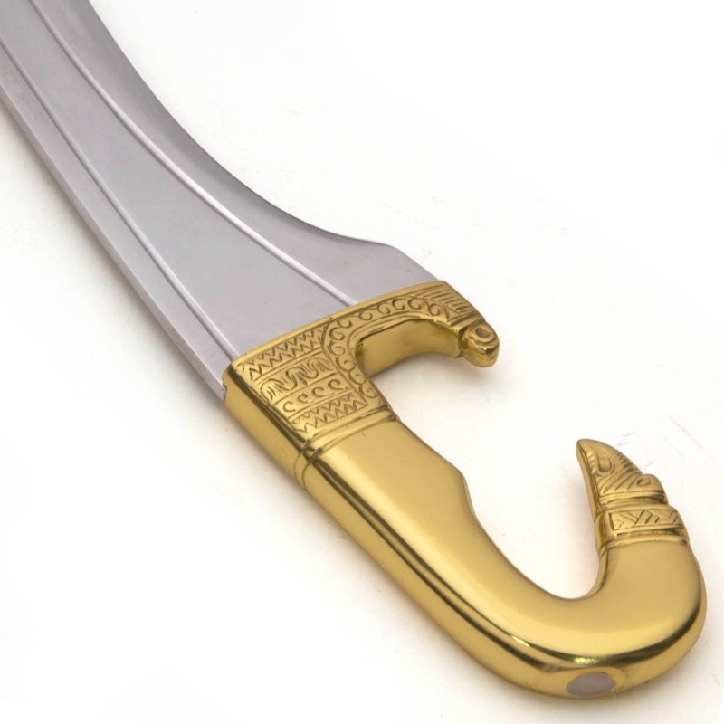 La hoja interior en forma curva proporcionaba un golpe que podía dañar el escudo y el casco del enemigo.