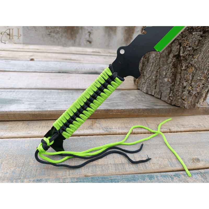 Machetes cortacañas Albainox MAD ZOMBIE. Si eres un amante de las herramientas útiles y versátiles, este machete cortacañas es perfecto para ti. Con una hoja de 46 centímetros de longitud, el mango encordado negro y verde, con una longitud de 17 centímetros, te proporcionará un agarre firme y seguro, incluso en condiciones adversas. Además, le da un toque estético único y llamativo. El machete cortacañas Albainox MAD ZOMBIE tiene una longitud total de 63 centímetros, lo que lo convierte en una herramienta compacta.