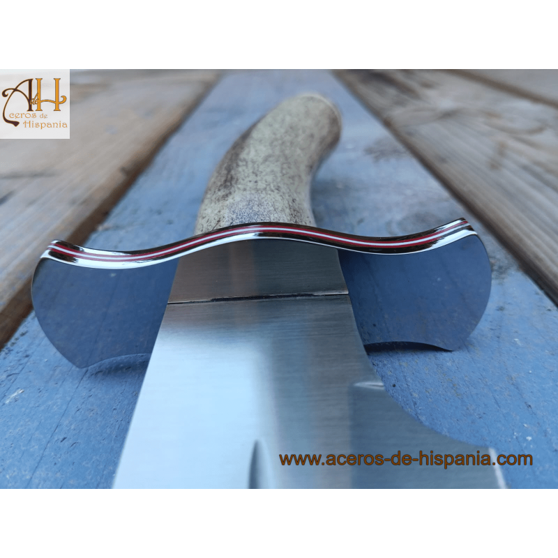 <p style="text-align:justify;"><span style="color:#000000;">- Longitud mango: 130 mm</span><br /><span style="color:#000000;">- Longitud hoja: 230 mm</span><br /><span style="color:#000000;">- Peso: 420 gramos</span><br /><span style="color:#000000;">- Mango de asta de ciervo</span><br /><span style="color:#000000;">- Acero: X50CrMoV15</span><br /><span style="color:#000000;">- Dureza: 57-58 HRC</span><br /><span style="color:#000000;">- Incluye funda de piel marrón</span></p>
