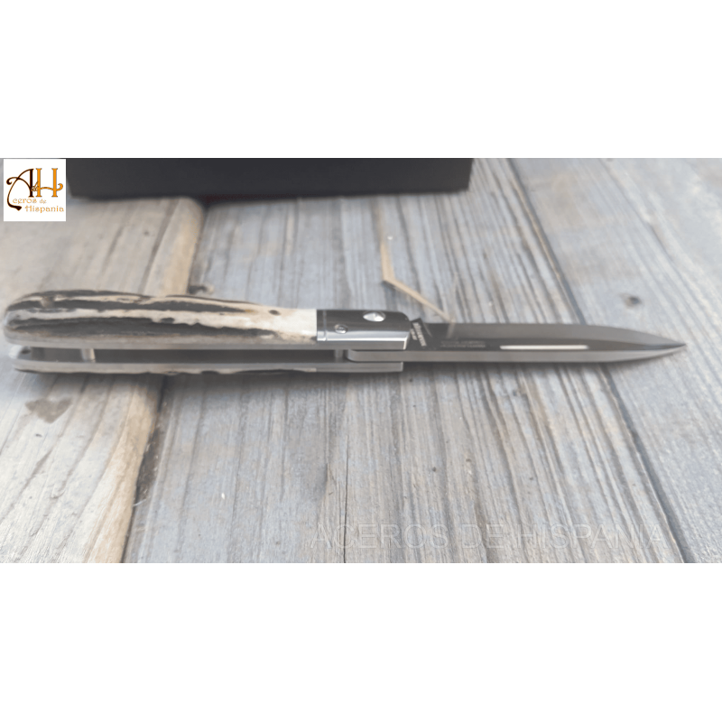 - Estética Clásica: Su acabado natural resalta la belleza rústica del asta de ciervo, aportando un toque de distinción a la navaja.