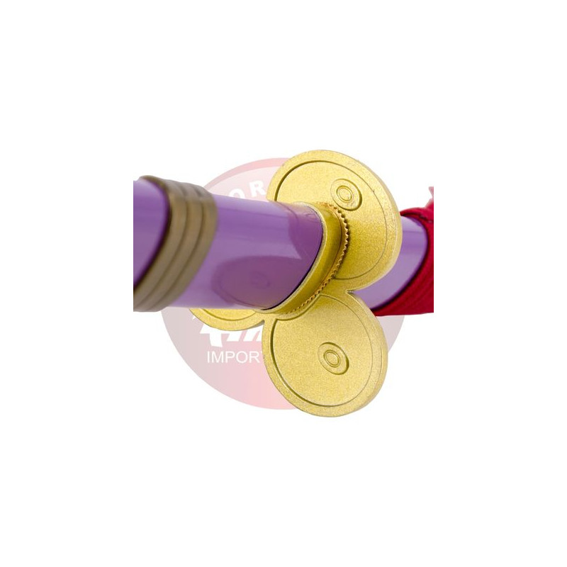 Katana S5005PL Katana Enma de Zoro de One Piece réplica no oficial acabada en lila, de 103 cm hoja de acero acabada en negro con detalles en el corte amarillos y verdes, con vaina lila con detalles dorados y encordado rojo, mango lila con con detalles dorados. Ref. S5005PL