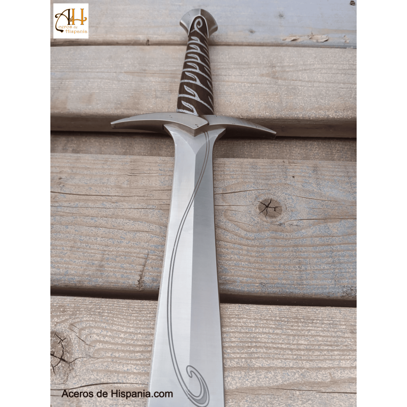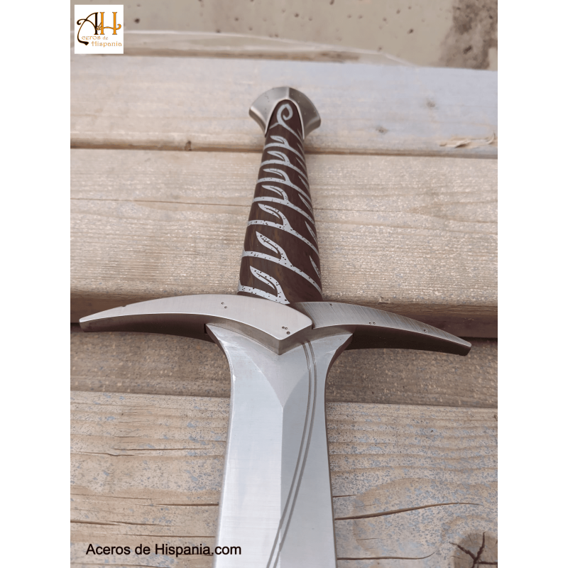 <p style="text-align:justify;"><span style="color:#000000;">La espada tiene una hoja de acero inoxidable y una empuñadura de metal fundido. Grabados extremadamente detallados decoran la empuñadura. Se entrega con un expositor de pared con motivos de El Hobbit: Un viaje inesperado y con un certificado de autenticidad.</span></p>