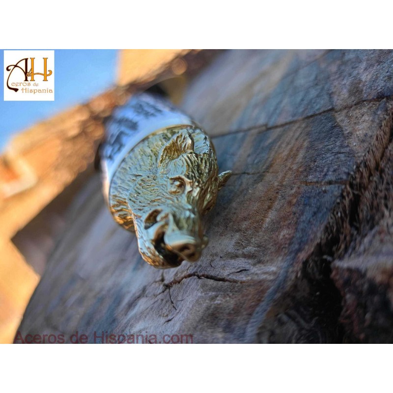 Pomo: Cabeza de jabalí en latón, símbolo de la caza tradicional