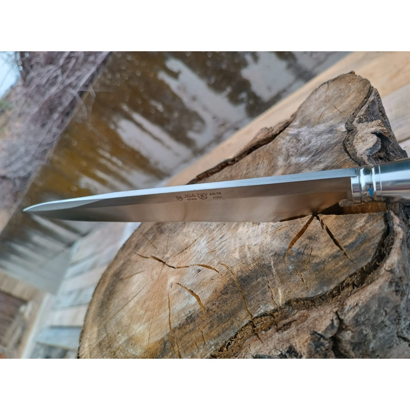 Con una hoja de acero AN58 C de alta calidad, el cuchillo Nieto Gaucho G-26 ofrece una excelente durabilidad y resistencia. Su hoja afilada de 26 cm y 4 mm de espesor, permite cortar fácilmente todo tipo de carnes, desde jugosos cortes de carne de res hasta tiernos trozos de pollo. Además, su diseño ergonómico y mango de madera de stamina, proporcionan un agarre cómodo y seguro, lo que facilita su uso durante largas sesiones de asado.
