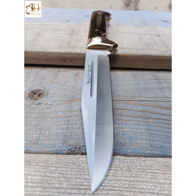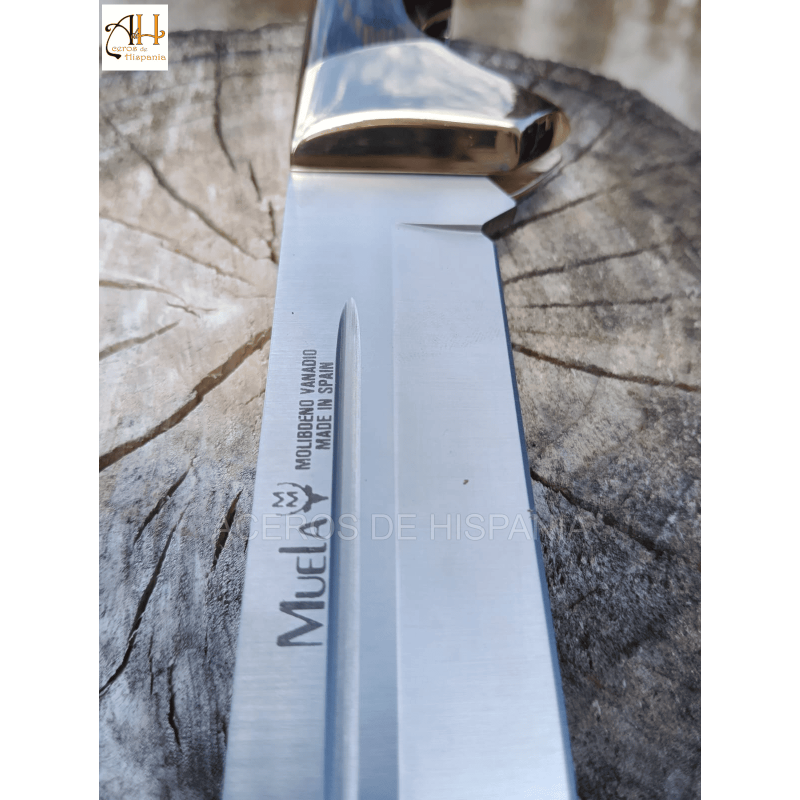 <p style="text-align:justify;"><span style="color:#000000;">El <strong>cuchillo Muela de caza</strong> ha diseñado con un mango de 135 mm (5 1/8") y una hoja de 180 mm (7 1/8"), esta versátil herramienta ofrece una maniobrabilidad y un control excepcionales, lo que la convierte en un compañero indispensable para las actividades al aire libre. Con un peso de 440 gramos, logra el equilibrio perfecto entre peso y portabilidad.</span></p>