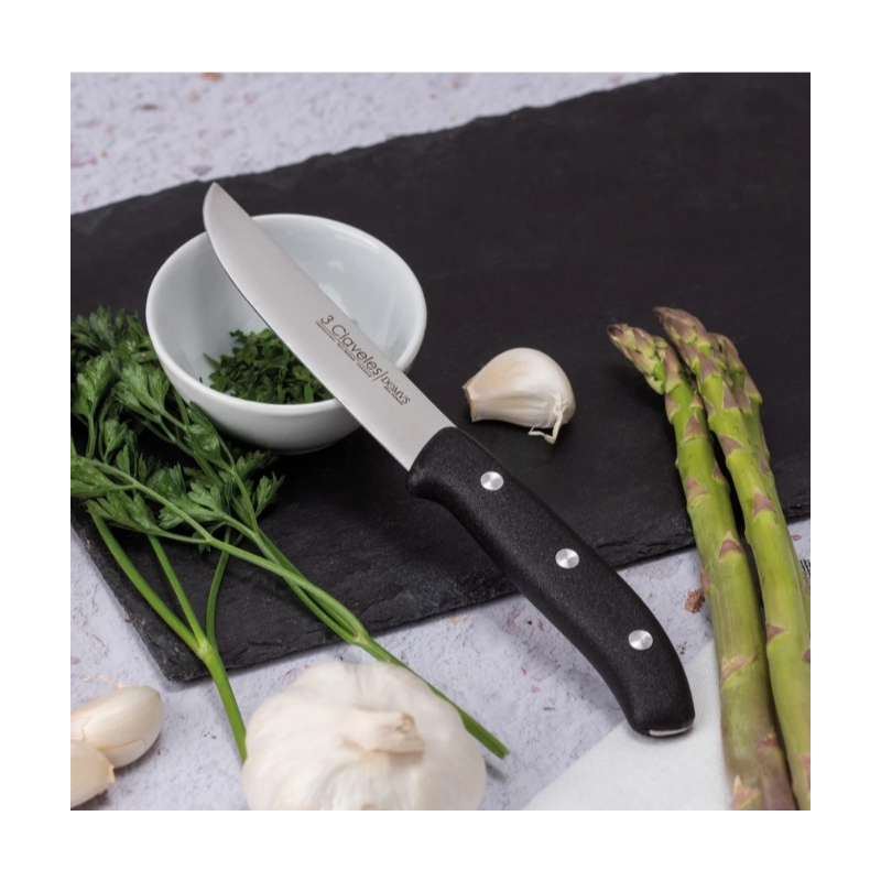 <p>- Cuchillo de cocina.<br />- Acero inoxidable, molibdeno vanadio.<br />- Pulido mate.<br />- Mango POM, polioximetileno.<br />- Apto para lavavajillas.<br />- Presentado en funda de hoja.</p>