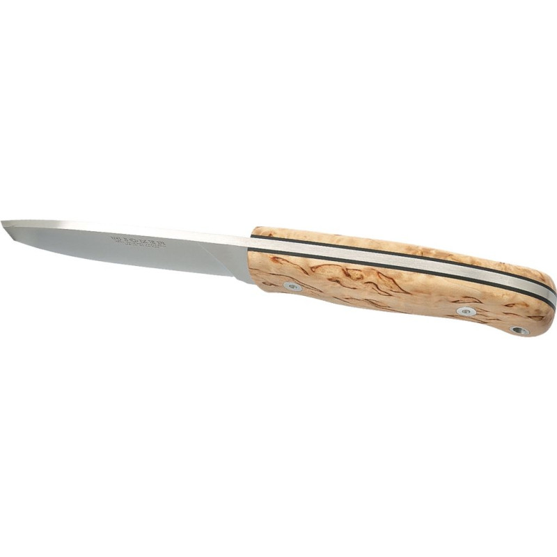 CUCHILLO DE MONTE ENTERIZO CON CACHAS DE ABEDUL RIZADO Y HOJA DE 11 CM