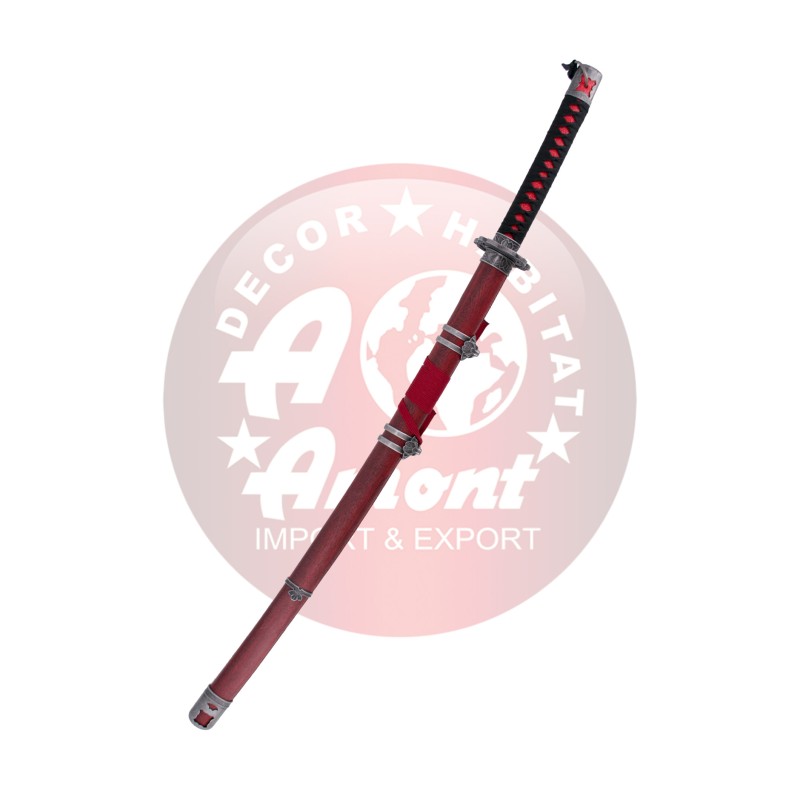 Katana S0315 del videojuedo Sekiro, réplica no oficial de 103 cm hoja de acero acabado en granate, vaina de madera roja, mango encordado negro. Con soporte. Ref. S0315