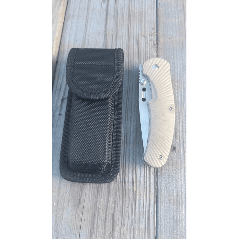 Con un mango de G10 de 11,9 cm, con acabado piedra limpia clara (white stone washed), esta navaja se adapta cómodamente a tu mano. Ofrece un agarre firme incluso en condiciones húmedas o con guantes, lo que la hace segura y eficiente.