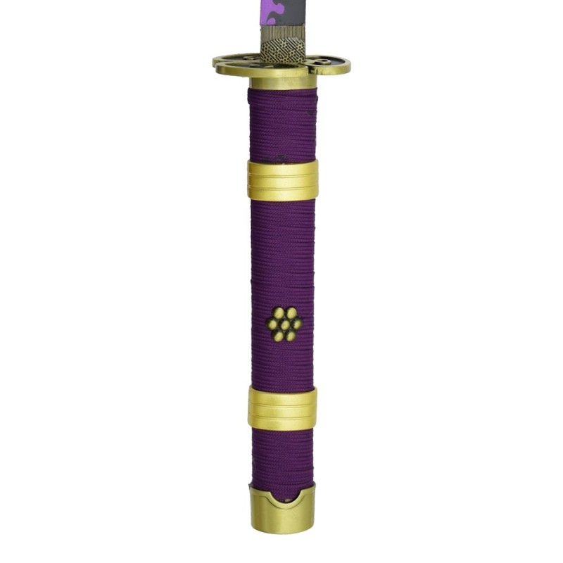 Con un acabado morado único que simula las llamas del Haki, esta katana es mucho más que un objeto coleccionable: es una pieza esencial para verdaderos fans del universo de One Piece.