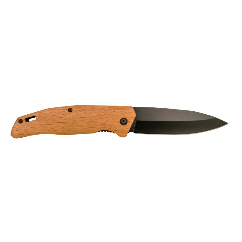 Navaja Third mango de madera de arce, hoja de acero 420 acabada en negro de 8,8 cm, navaja de bloqueo de forro.