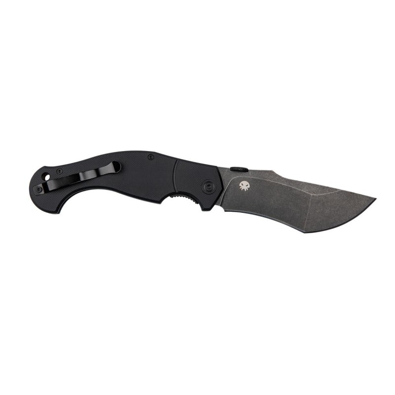 Mango de G10 negro, ligero, resistente y de agarre firme.