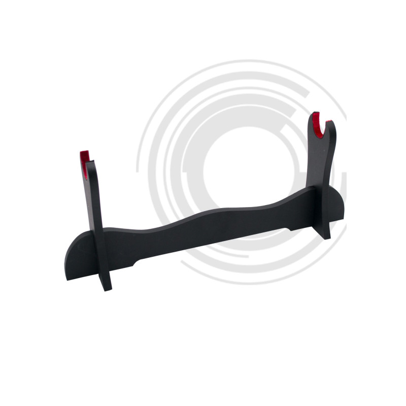 Support S2221 pour un katana en bois noir et avec tercipole rouge dans la zone d’appui du katana. Réf. S2221