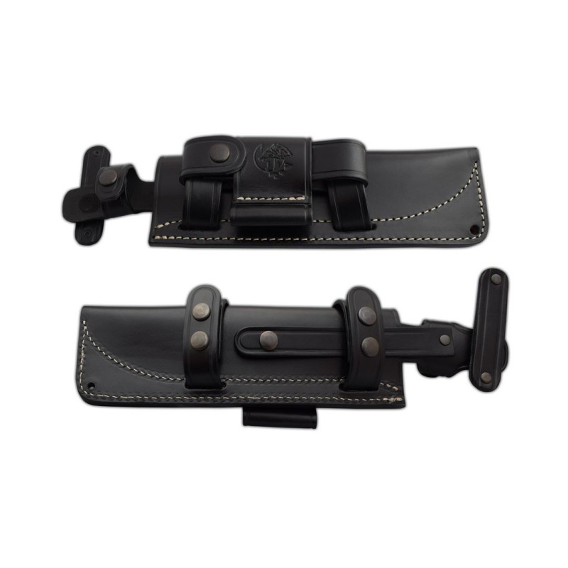 <p>- Lieu de fabrication : Albacete (Espagne)</p> <p>- Référence catalogue : 1468-M1</p> <p>- Type d’embout : Point de chute</p> <p>- Longueur de la lame : 17,5 cm</p> <p>- Longueur du manche : 13,5 cm</p> <p>- Longueur totale : 31 cm</p> <p>- Largeur maximale de la lame : 4,3 cm</p> <p>- Épaisseur de la lame : 5 mm</p> <p>- Matériau de la lame : Acier inoxydable MV-58</p> <p>- Dureté : 56/58 HRc</p> <p>- Matériau de la poignée : Micarta noir</p> <p>- Matériau de la couverture : Cuir</p> <p>- Poids : 651 grs (avec housse incluse)</p> <p>- Extras : Trou pour la fixation du cordon</p> <p>Bouton marteau.</p> <p>Couvercle multi-positions avec porte-silex (accessoire NON inclus)</p>