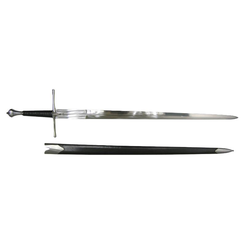 <p>Bien qu’elle ait plusieurs noms, épée de guerre, grande épée, épée longue et épée à deux mains, la grande épée était une arme très populaire.<br />Cette épée a une grande longueur qui lui donne une plus grande portée et une plus grande puissance.<br />Au fur et à mesure que la longueur augmentait, la vitesse augmentait également considérablement.<br />Le ricasso permet de saisir l’épée au-delà de la garde, raccourcit l’épée et permet de l’utiliser comme une lance courte.<br />Cela permet une poussée plus solide car la lame est maintenue fermement en deux points distincts.<br />Cette réplique est tout aussi spectaculaire que l’original.<br />La lame est en acier au carbone, trempée, le manche est en bois cannelé, enveloppé de cuir, et le pommeau et la garde sont en acier.<br />Livré avec fourreau en cuir.<br /><br /><br />- Total : 122 cm <br /><br />- Lame : 96 cm <br /><br />- Poids : 1 300 g <br /><br />Fabriqué par Windlass Steelcrafts®</p>