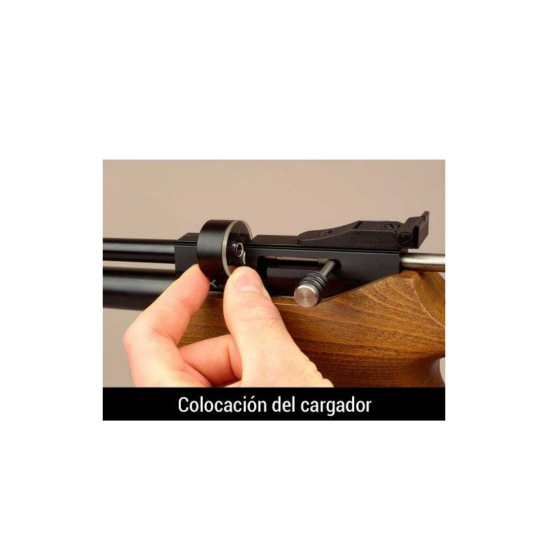 <ul> <li> Jauge : 4,5 · 5,5</li> <li> Gâchette : Réglable (22,2 N)</li> <li> Pression d’air Max. 220 Bar</li> <li> Volume du réservoir d’air : 50 cc</li> <li> N’INCLUT PAS DE VANNE DE RÉGULATION.</li> <li> Sonde de charge avec connecteur rapide Foster</li> <li> Il est alimenté avec une puissance approximative de 17 joules</li> <li> Silencieux intégré dans tout le canon</li> <li> Rail de 11 mm pour placer le viseur</li> <li> Viseur et guidon intégrés</li> <li> Manche ergonomique en bois</li> <li> Chargeur monoporteur et passerelle inclus</li> <li> Capacité du chargeur : 4,5 jauge : 9 plombs / 5,5 jauge : 7 plombs</li> <li> Longueur (cm) 52,5</li> <li> Poids à l’expédition (g) 1100</li> </ul>