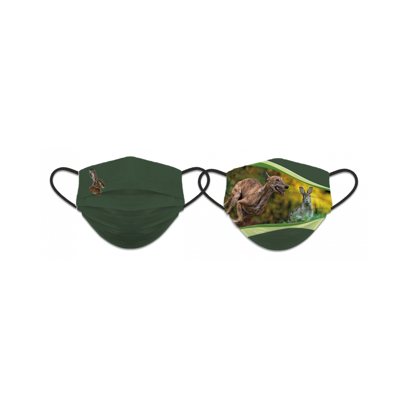 Attache faciale réversible de niveau 3<br />Modèle:<br />-Face 1 : Vert - Image de lapin<br />-Face 2 : Vert - Chasse au lièvre<br />Composition des matières premières : 92% PES / 8% SPANDEX<br />Fonctionnalités:<br />- Nombre maximum de cycles de lavage dans lesquels la protection du masque est garantie : 25<br />- Les masques doivent être lavés à l’aide d’un cycle de lavage normal et complet à 60º avec un détergent.<br />-Ce masque doit être utilisé en complément des mesures de protection et d’hygiène recommandées dans les règles de distanciation sociale fondamentales au contrôle du Covid-19<br />REMARQUE IMPORTANTE : Les masques de niveau 2 et 3 ne sont pas encadrés comme du matériel médical ou de l’équipement de protection individuelle EPI<br />
