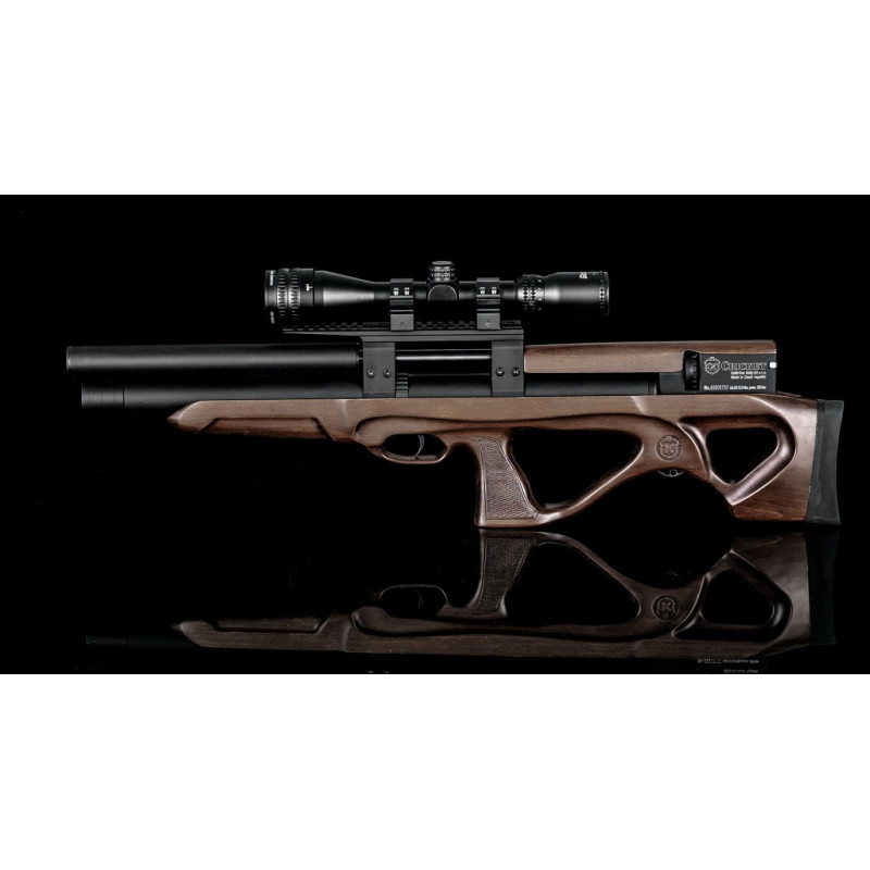 <p> Cette carabine PCP Bullpup avec système multi-coups contient un nouveau système de chargement avec levier latéral commutable (de gauche à droite)</p> <p> Puissance réglable, sécurité manuelle (système rotatif) et rail Weaver.</p> <p> Culasse avec système de porte-chargeur et joues inclus.</p> <p> Canon de haute précision de 450 mm (17,7 po) armé à froid</p> <p> Manomètre inclus et connecteur de remplissage rapide inclus. La pression de remplissage est de 300 bars (4351 psi) et la capacité d’air est de 280 cc.</p> <p> Gâchette réglable à deux temps.</p> <p> Longueur totale 680mm (26.8'')</p> <p> Poids sans viseur : 3,2 kg (7,1 lb)</p> <p> La carabine est fournie avec deux chargeurs multi-coups d’une capacité de 14 coups, un connecteur de charge et un kit de joints toriques.</p>