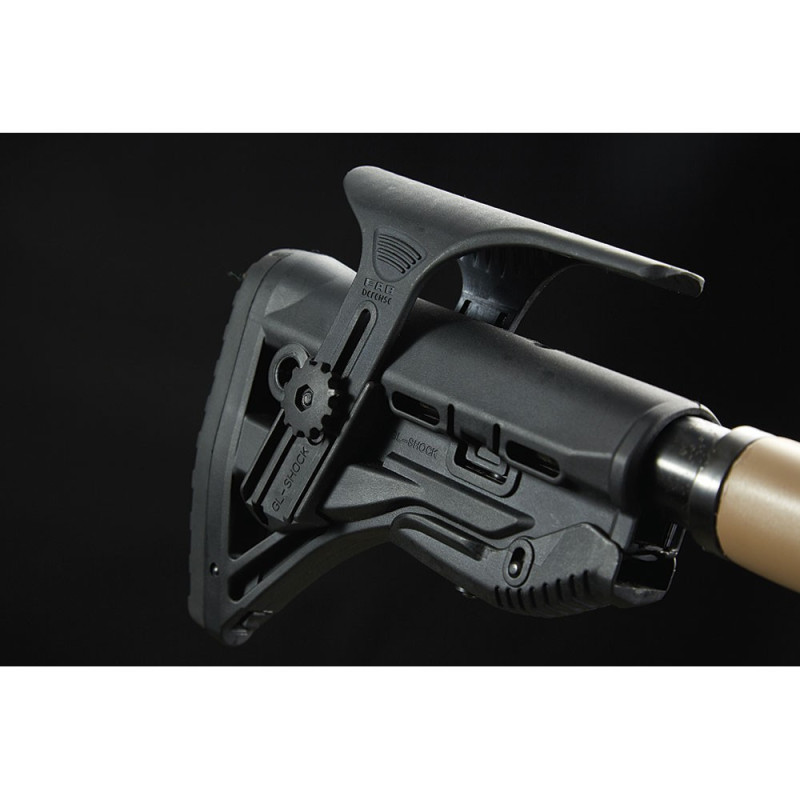 Crosse synthétique AR et joues réglables en hauteur.