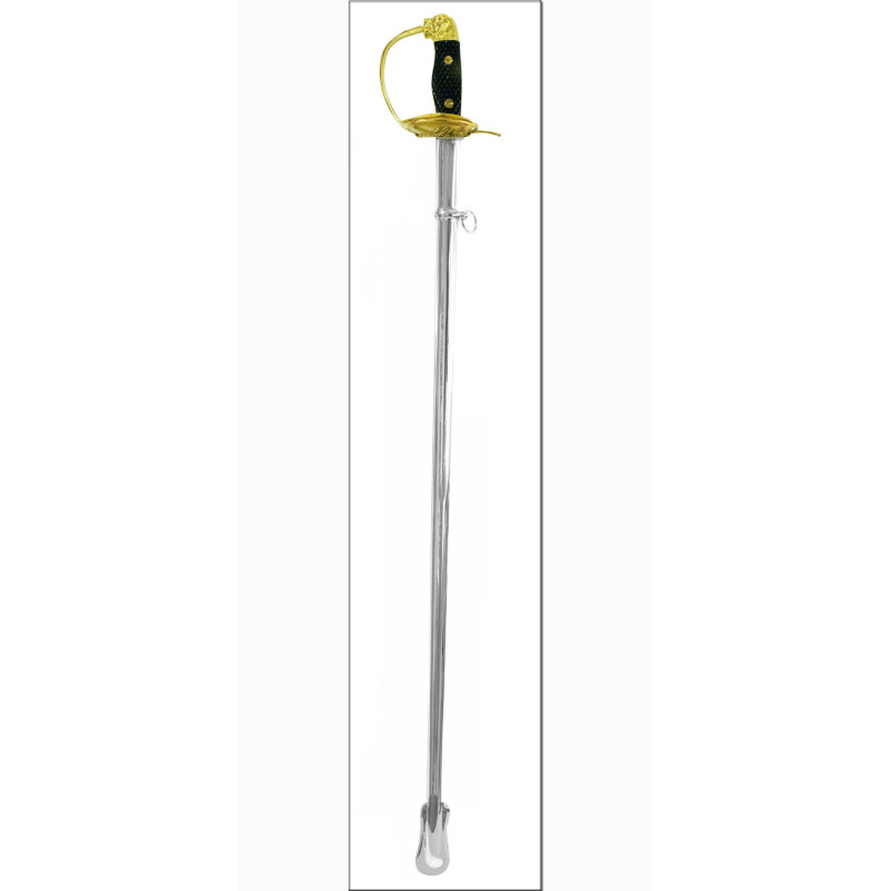 <p>Sabre d’officier de la Garde civile<br /><br />FABRIQUÉ SELON LES SPÉCIFICATIONS DU GOUVERNEMENT ESPAGNOL<br /><br />- Lame en acier inoxydable polie, gravée et finie selon les spécifications du gouvernement.<br />- Poignée en laiton doré à l’or fin.<br />- Comprend un pod.</p>