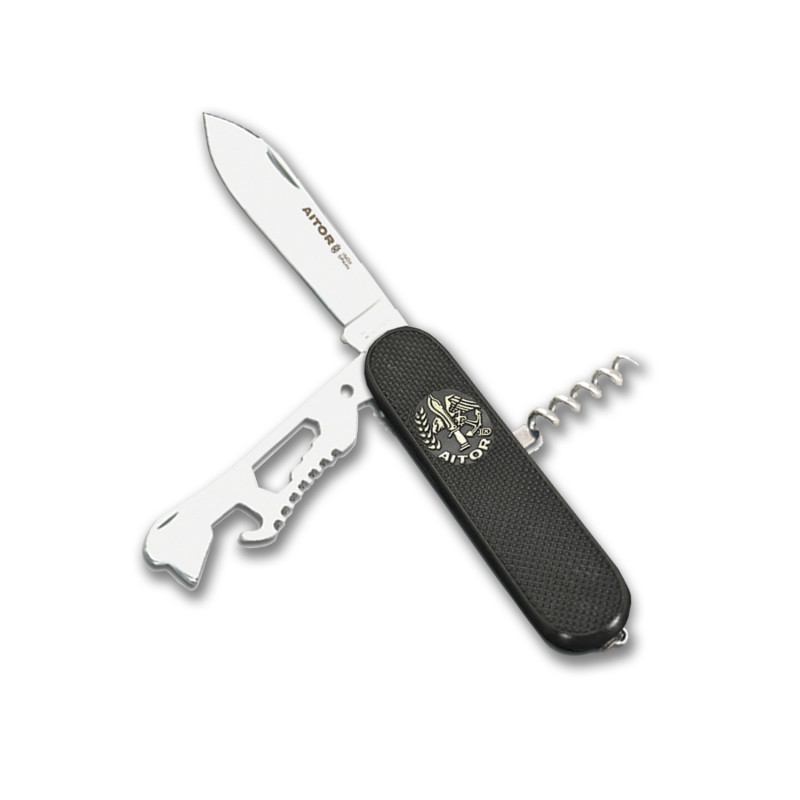<p> - Manche de 105 mm de long.<br /> - Lame de 80 mm<br /> - Comprend les accessoires suivants :<br /> *Tire-bouchon.<br /> *Feuille.<br /> * Outil multifonction.</p>