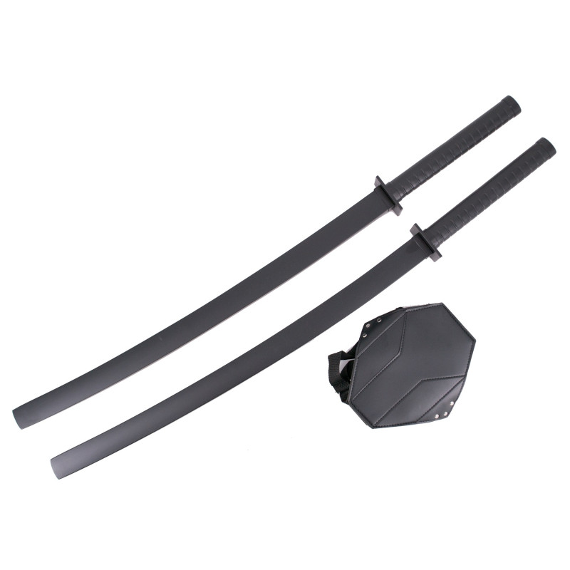 Cet ensemble comprend deux katanas et un sac à dos à porter sur le dos.