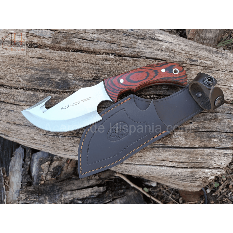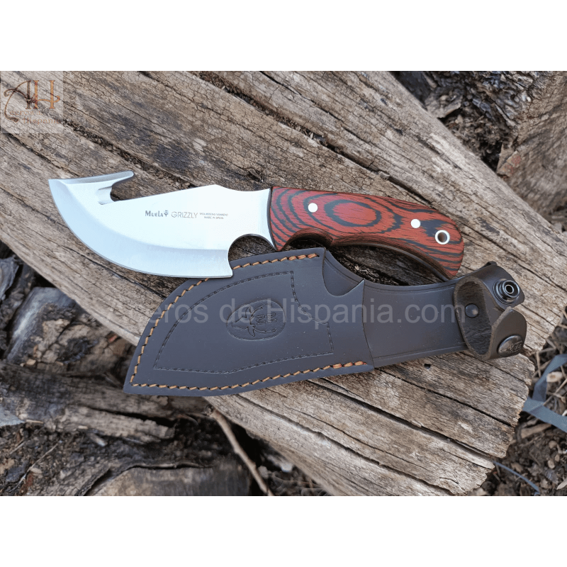 Les couteaux Muela pour la chasse. Le modèle Grizzly 12R dispose d’une lame de 17 cm. La lame est en acier massif 440c, cet acier 440c est un acier inoxydable, il est très résistant à l’usure. Le manche a une longueur de 11,5 cm avec des écailles en bois rouge laminé.