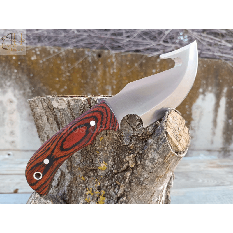 - Lame solide en acier 440c - Écailles en bois rouge laminé