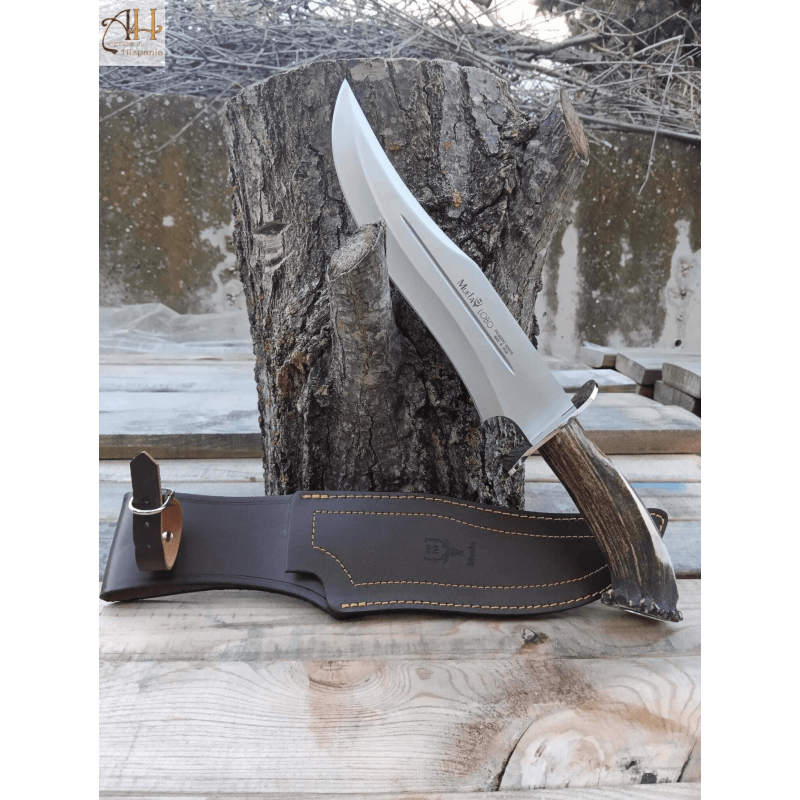 <p style="text-align:justify;"><span style="color:#000000;">Les couteaux Muela sont dotés d’une élégante manchette en bois de cerf avec rosette, ce qui lui donne non seulement un aspect traditionnel, mais lui donne également une touche distinctive et sophistiquée. De plus, il est doté d’une traverse en acier inoxydable qui ajoute une touche de style à ce couteau exceptionnel. Ce couteau est livré avec un étui en cuir, ce qui le rend facile à transporter et à protéger. Que vous soyez à la chasse, en camping ou que vous pratiquiez des sports de plein air, ce couteau est le complément parfait à vos aventures. Ces couteaux de sport sont Muela fabriqués en Espagne.</span></p>