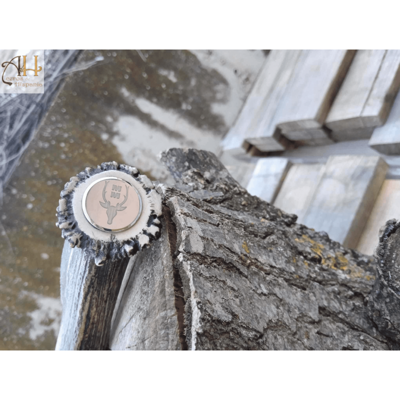 <p><span style="color:#000000;">- Manchette en bois de cerf avec rosette</span></p>