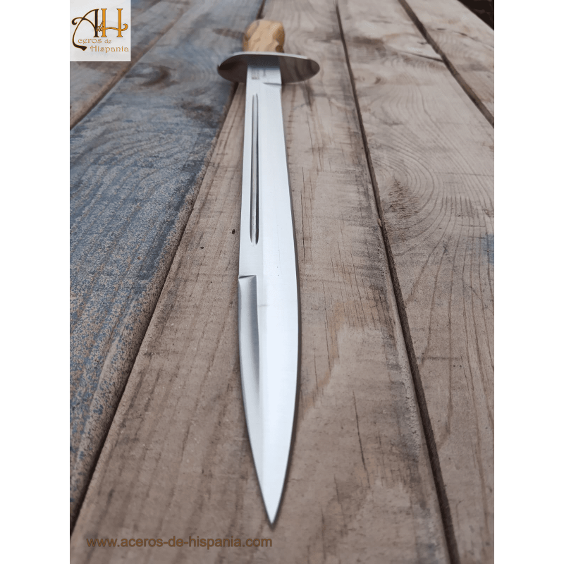 Le manche est en bois d’olivier et a une longueur de 12,5 cm. La longueur totale du couteau est de 45,5 cm. Il pèse 320 grammes.