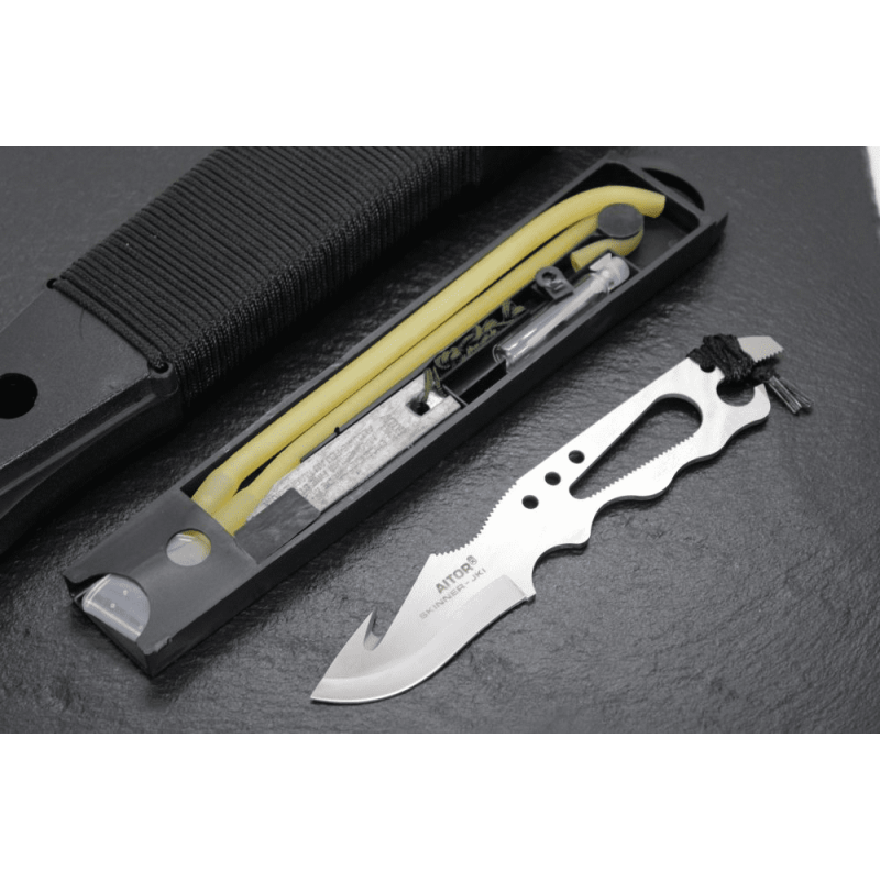 L’étui et la poignée comprennent les accessoires de survie suivants :