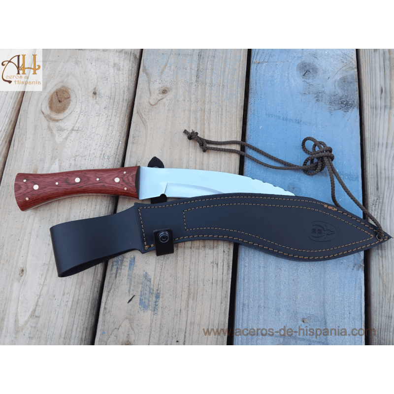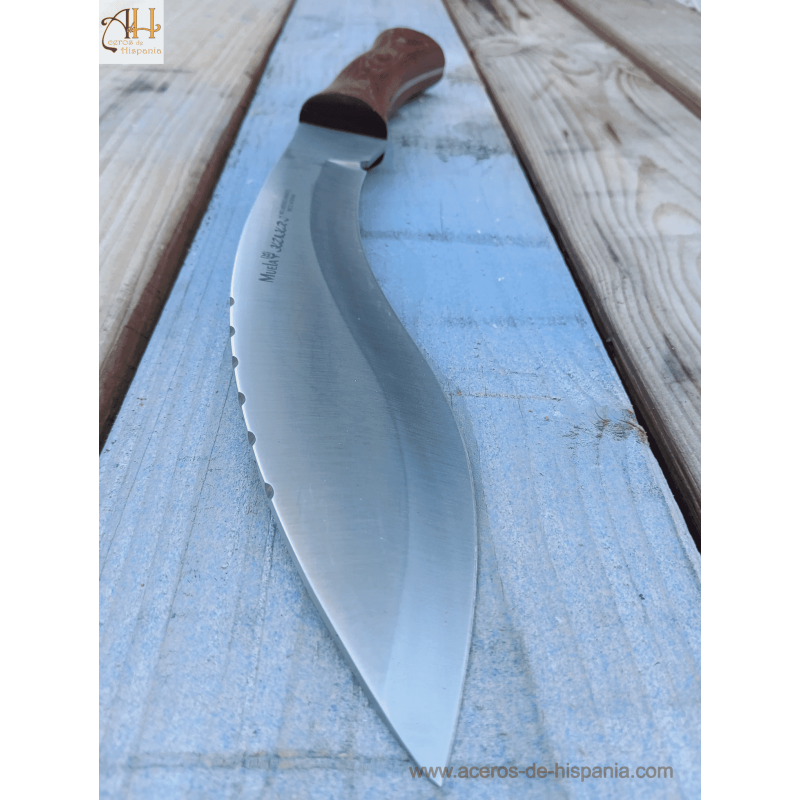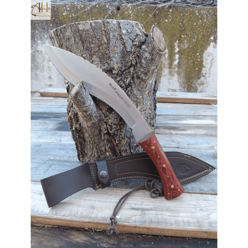 Couteaux Kukri, ce couteau d’extérieur Muela Kukri 26-M, est fabriqué en Espagne par Muela artisan de couteaux de poche et de couteaux. Il est doté d’une lame solide en acier Vanario Molybdène de 260 mm de long. Le manche est en palissandre d’une longueur de 130 mm. Il pèse 560 grammes.