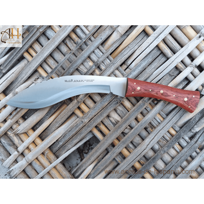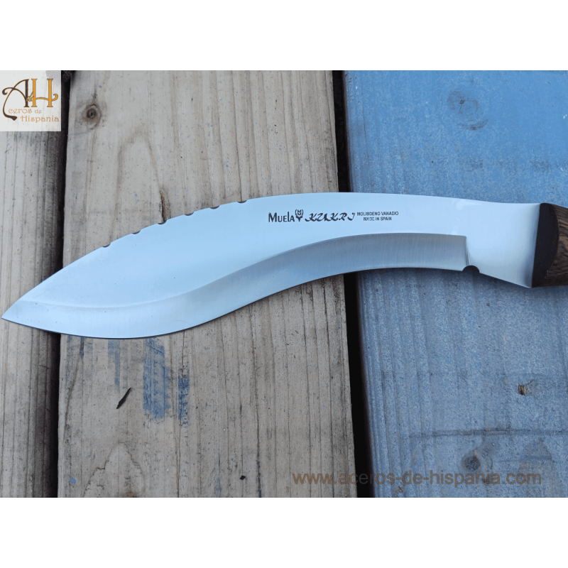 <p style="text-align:justify;">Couteaux Kukri, ce couteau d’extérieur Muela Kukri 26-M, est fabriqué en Espagne par Muela artisan de couteaux de poche et de couteaux. Il est doté d’une lame solide en acier Vanario Molybdène de 260 mm de long. Le manche est en palissandre d’une longueur de 130 mm. Il pèse 560 grammes.</p>
