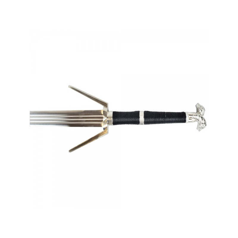 <p>ÉPÉE INSPIRÉE DE L’ÉPÉE SERPENTINE EN ARGENT DE GERALT DE RIVIE</p><p>THE WITCHER 3 : SÉRIE WILD HUNT</p><p>POIGNÉE EN MÉTAL AVEC REVÊTEMENT EN CORDE</p><p>GAINE EN SIMILICUIR AVEC CEINTURE</p><p>LONGUEUR TOTALE : 115 CM</p><p>LONGUEUR DE LA LAME : 89 CM</p><p>POIDS : 1580 GR.</p>