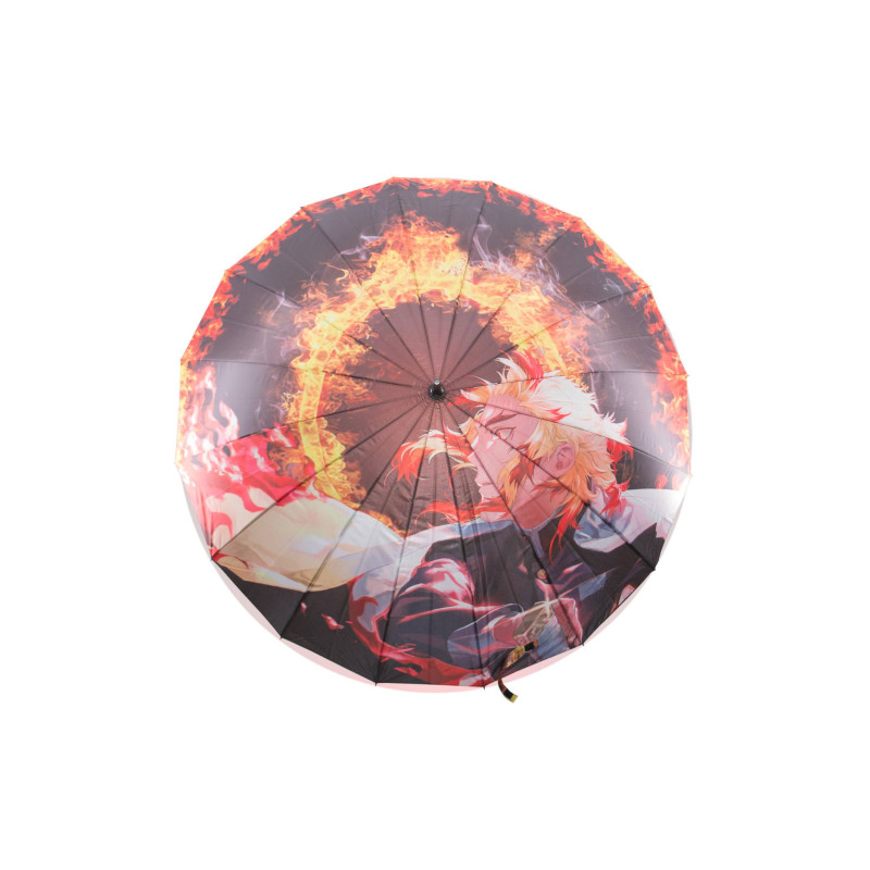 <p>Un katana parapluie inspiré du katana de Kyojuro Rengoku, un personnage emblématique de l’univers de Demon Slayer, il s’est distingué comme un courageux chasseur de démons et le pilier de flamme au sein du Corps d’Extermination des Démons.</p> <p>Sa gentillesse était combinée à des compétences exceptionnelles en matière d’escrime, perfectionnées par une discipline rigoureuse. Guerrier de l’honneur, Rengoku suivait un code moral enraciné dans les valeurs transmises par sa mère, croyant fermement en la responsabilité des forts de protéger les faibles.</p> <p>Ce personnage de la série Kimetsu no Yaiba était célèbre pour sa force et son endurance inégalées. Sa vitesse atteignait le point de générer des tremblements à chaque mouvement.</p> <p>Cet épéiste talentueux était connu pour sa maîtrise du style de combat connu sous le nom de « Souffle de flamme », maîtrisant plusieurs postures mortelles, notamment la mer de feu, le ciel flamboyant montant, les esprits brûlants, la vague de flammes ardentes, le tigre de feu et le purgatoire.</p>