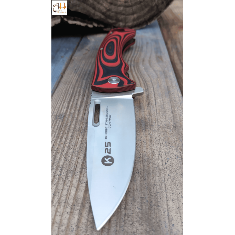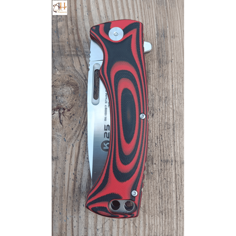 "Couteau CNC K25 G-10 Rouge-Noir : La combinaison parfaite de style et de fonctionnalité"