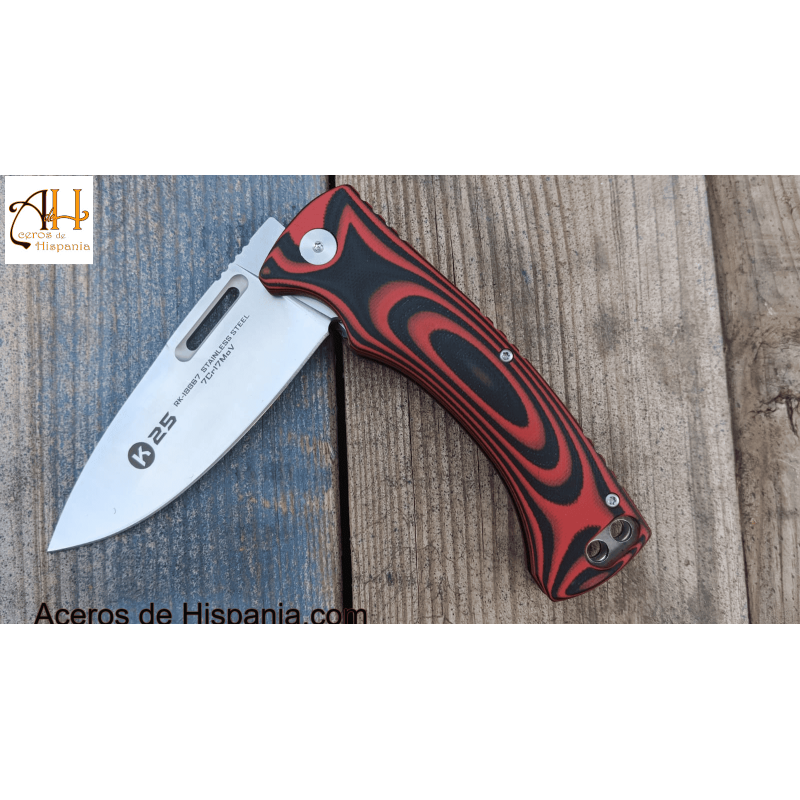 <p style="text-align:justify;"><span style="color:#000000;"><strong>"Couteau CNC K25 G-10 Rouge-Noir :</strong> La combinaison parfaite de style et de fonctionnalité"</span></p> <p style="text-align:justify;"><span style="color:#000000;">Cuchillo K25 est un outil qui se distingue non seulement par son design attrayant, mais aussi par sa fonctionnalité et sa durabilité. Avec une lame de 9,80 cm en acier 7Cr17MoV, ce couteau devient le compagnon idéal de tout aventurier ou amateur de plein air.</span></p> <p style="text-align:justify;"><span style="text-decoration:underline;color:#000000;"><strong>Conception et matériaux de haute qualité</strong></span></p> <p style="text-align:justify;"><span style="color:#000000;">Lame de 9,80 cm avec acier 7Cr17MoV.</span></p> <p style="text-align:justify;"><span style="color:#000000;">La lame du K25 Razora mesure 9,80 cm et est fabriquée en acier 7Cr17MoV, un matériau connu pour sa résistance et sa capacité à conserver son tranchant. Avec une épaisseur de 3,80 mm, cette lame offre une robustesse qui la rend idéale pour une grande variété de tâches, de la coupe de cordes à la préparation de nourriture dans un campement.</span></p> <p style="text-align:justify;"><span style="color:#000000;">Manche simulant l’aspect du bois de Wengé rouge.</span></p> <p style="text-align:justify;"><span style="color:#000000;">Le design du couteau K25 est complété par ses poignées G10, qui simulent l’aspect du bois de wengé rouge. Ce matériau offre non seulement une prise en main sûre, mais ajoute également une touche esthétique qui le distingue des autres couteaux du marché. La combinaison des couleurs rouge et noir lui donne un caractère moderne et élégant.</span></p> <p> <p style="text-align:justify;"><span style="text-decoration:underline;color:#000000;"><strong>Fonctionnalité et sécurité</strong></span></p> <p style="text-align:justify;"><span style="color:#000000;">Étui en nylon noir</span></p> <p style="text-align:justify;"><span style="color:#000000;">Le couteau K25 comprend une gaine en nylon noir pour un transport et un rangement faciles. Cet étui protège le couteau d’éventuels dommages et permet de le porter en toute sécurité à la ceinture ou dans un sac à dos.</span></p> <p style="text-align:justify;"><span style="color:#000000;">Système de sécurité Liner Lock</span></p>