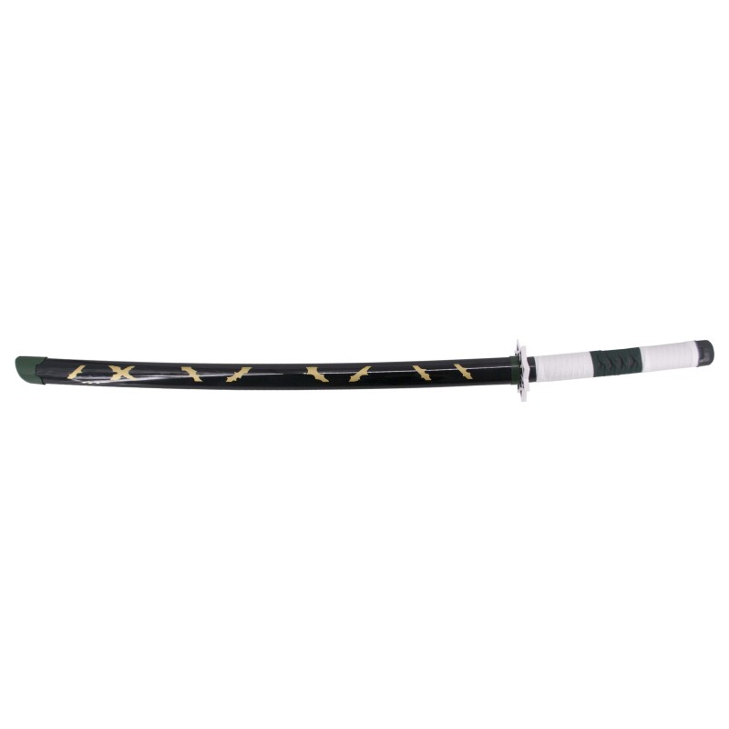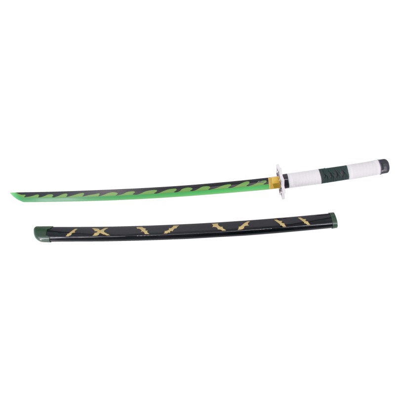 <p>Lumière LED katana, feuille de bambou S6049 Demon Slayer</p> <p> <p>Katana avec lame de bambou et lumière LED de Demon Slayer manié par Shinazugawa Sanemi réplique non officielle de la lame de bambou de 68,5 cm en rouge et noir, avec bande led de couleur verte, poignée filaire verte et blanche. Mécanisme de pile AAA, fourreau noir avec détails blancs. Réf. S6049</p> <p> <p>Modèle : S6049</p> <p>Taille totale : 101 cm</p> <p>Taille de la lame : 68,5 cm</p> <p>Épaisseur de la lame : 7,6 mm</p> <p>Poignée : Filaire</p> <p>Aucun soutien</p> <p>Poids : 509 gr.</p> <p>