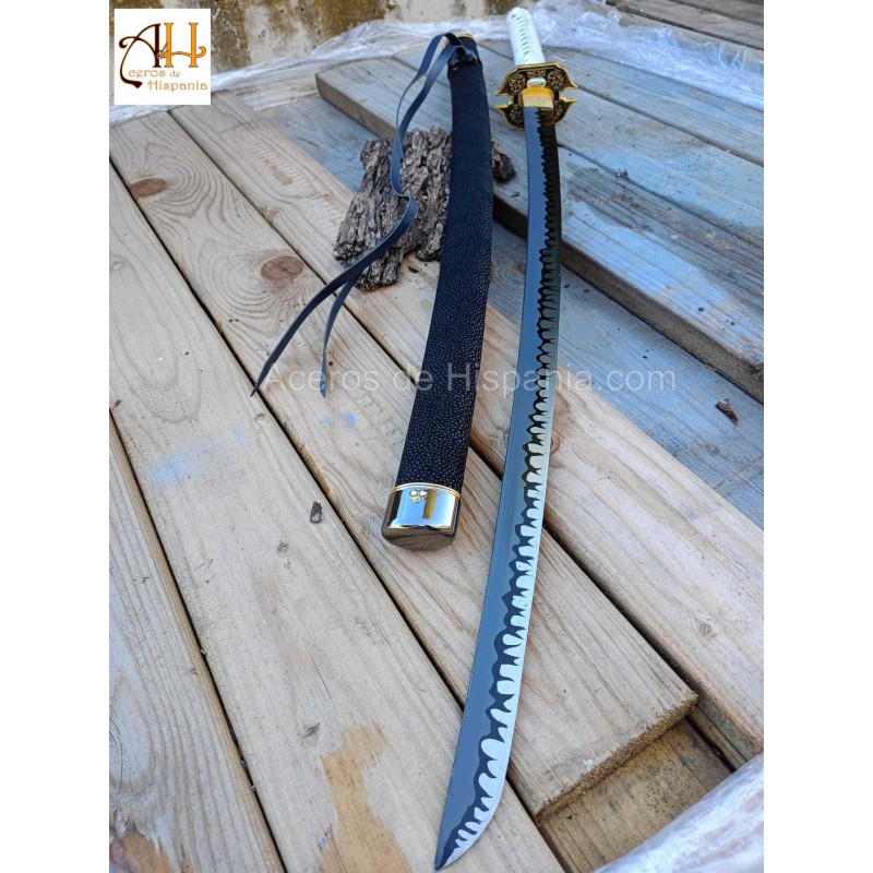 <p style="text-align:justify;"><span style="color:#000000;">Le katana fonctionnel de Vergil Yamato dans Devil May Cry 5</span></p> <h1 style="text-align:justify;"><span style="color:#000000;"><strong>Katana fonctionnel de Vergil – Yamato (Devil May Cry 5) – Réplique non officielle</strong></span></h1> <h3 style="text-align:justify;"><span style="color:#000000;"><strong>Nom du katana</strong> : <strong>Yamato</strong></span></h3> <h3 style="text-align:justify;"><span style="color:#000000;"><strong>Propriétaire</strong> : <strong>Vergil</strong>, frère de Dante</span></h3> <h3 style="text-align:justify;"><span style="color:#000000;"><strong>Histoire du Katana Yamato</strong></span></h3> <p style="text-align:justify;"><span style="color:#000000;">Le <strong>Yamato</strong> est un katana légendaire de <em>Devil May Cry</em>, manié par <strong>Vergil</strong>, le frère jumeau <strong>de Dante</strong>. Il s’agit d’une épée magique héritée de son père, <strong>Sparda</strong>, capable de <strong>fendre l’espace et d’ouvrir des portails dimensionnels</strong>.</span></p> <p style="text-align:justify;"><span style="color:#000000;">Dans <em>Devil May Cry 5</em>, Vergil utilise le <strong>Yamato</strong> pour se diviser en deux entités : <strong>Urizen</strong> (son côté démoniaque) et <strong>V</strong> (son côté humain). Après avoir récupéré le katana, il retrouve sa véritable forme et s’avère être l’un des guerriers les plus meurtriers de la série.</span></p> <h3 style="text-align:justify;"><span style="color:#000000;"><strong>Qui est le plus fort dans Devil May Cry 5 ?</strong></span></h3> <p style="text-align:justify;"><span style="color:#000000;">Vergil est considéré comme le personnage le plus fort du jeu, surpassant Dante et Néron grâce à sa vitesse, sa précision et sa maîtrise absolue du <strong>Yamato</strong>. Son style de combat mortel fait de lui un adversaire pratiquement invincible.</span></p> <h2 style="text-align:justify;"><span style="color:#000000;"><strong>Yamato Functional Katana – Réplique non officielle</strong></span></h2> <p style="text-align:justify;"><span style="color:#000000;"><strong>Modèle</strong> : <strong>S0314H</strong></span><br /><span style="color:#000000;"><strong>Inspiré par</strong> : <em>Devil May Cry 5</em></span><br /><span style="color:#000000;"><strong>Taille totale</strong> : <strong>104.5 cm</strong></span><br /><span style="color:#000000;"><strong>Longueur de la lame</strong> : <strong>72 cm</strong></span><br /><span style="color:#000000;"><strong>Épaisseur de la lame</strong> : <strong>7,3 mm</strong></span><br /><span style="color:#000000;"><strong>Matériau de la lame</strong> : <strong>Acier avec apprêt</strong></span><br /><span style="color:#000000;"><strong>Poignée</strong> : <strong>Filaire en blanc, prise ferme et confortable</strong></span><br /><span style="color:#000000;"><strong>Fourreau (Saya) :</strong> <strong>Bois doublé de cuir noir</strong></span><br /><span style="color:#000000;"><strong>Poids</strong> : <strong>1240 g</strong></span><br /><span style="color:#000000;"><strong>Inclus</strong> : <strong>Support d’affichage</strong></span></p> <h3 style="text-align:justify;"><span style="color:#000000;"><strong>Ajoutez-le à votre collection dès aujourd’hui !</strong></span></h3> <p style="text-align:justify;"><span style="color:#000000;">Si vous êtes un fan de <em>Devil May Cry</em>, cette <strong>réplique fonctionnelle du katana Yamato</strong> est un must-have. Parfait pour <strong>les collectionneurs, les cosplayers et les expositions</strong>.</span></p> <p style="text-align:justify;"><span style="color:#000000;"> Ne manquez pas le vôtre !</span></p>