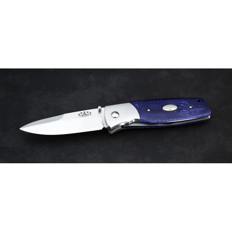 <p>Acier : Elmax</p> <p>Dureté (HRC) : 61-62</p> <p>Bord : Convexe</p> <p>Matériau de la poignée : Juma Blue Snake</p> <p>Poids : 179 g</p> <p>Longueur de la lame : 8,8 cm</p> <p>Épaisseur de la lame 3,5 mm</p> <p>Longueur totale : 19,9 cm</p> <p>Longueur totale, pliée 11,1 cm</p> <p>Assurance interne.</p>