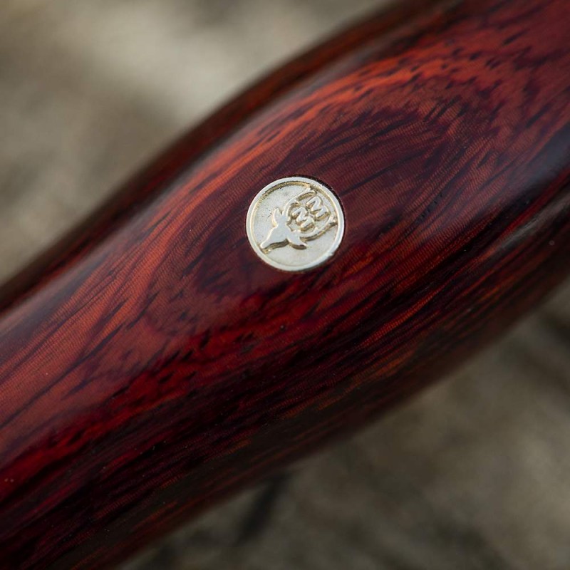 Ce modèle spectaculaire Escudero 30R est doté d’une lame à double tranchant, caractéristique des couteaux utilisés pour la finition des pièces dans la chasse au gros gibier.