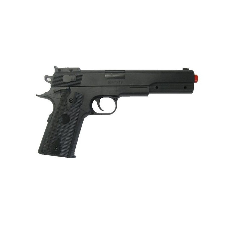 <p>Pistolet airsoft avec système de ressorts.</p> <p>Munitions compatibles : billes de 6 mm</p> <p>Opération:</p> <ul> <li>Abaissez la languette du chargeur et insérez les billes.</li> <li>Tirez la glissière à fond pour charger.</li> <li>Tirer</li></ul> <p>Puissance : 0,5 joules</p> <p>DON D’UN SAC DE MUNITIONS PVC BALL</p>
