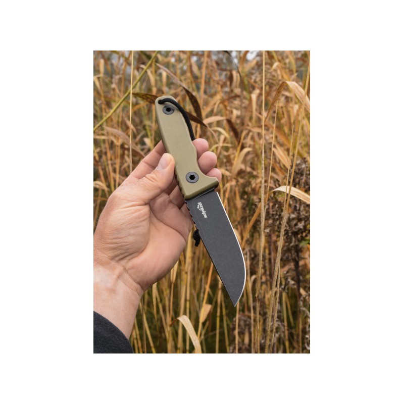 - Matériau de la lame : Acier inoxydable 14C28N avec finition stonewash noire