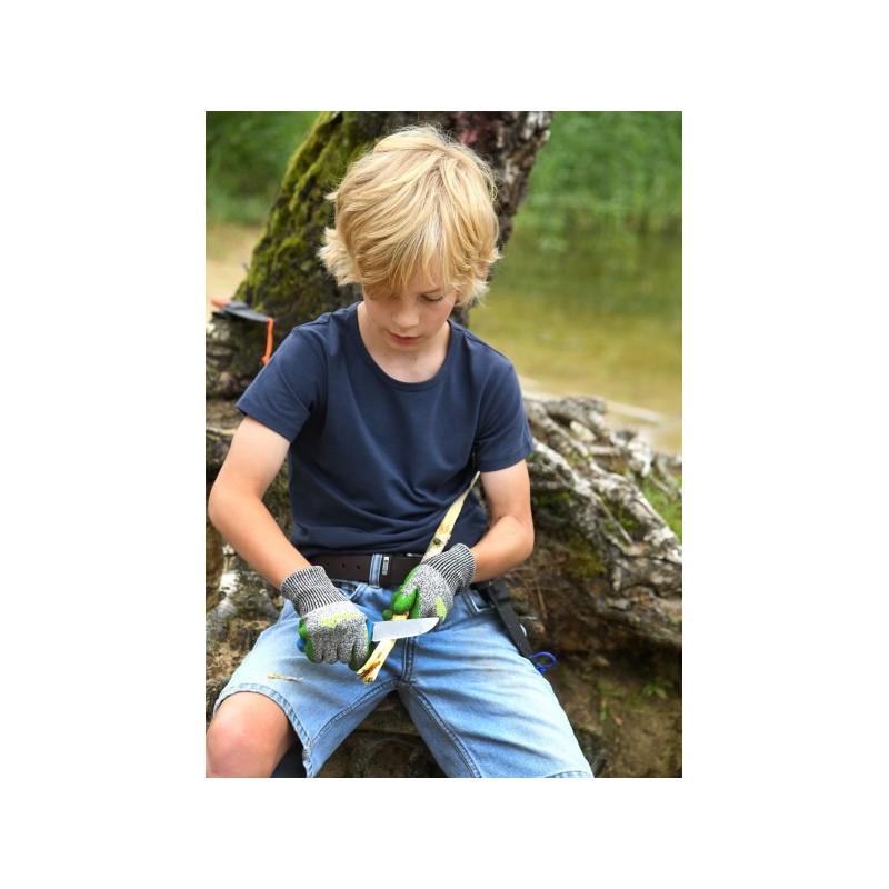 <p>Couteau Schnitzel UNU, pour enfants, bleu</p> <p></p> <p>- Matériau de la lame : acier inoxydable 8Cr13Mov avec finition Stone Wash </p> <p>- Matériau de la poignée : G-10 en bleu (également disponible en vert, rouge orangé et rose) </p> <p>- Longueur totale : env. 17 cm </p> <p>- Longueur de la lame : environ 8 cm </p> <p>- Épaisseur de la lame : environ 3 mm </p> <p>- Longueur de la poignée : environ 9 cm </p> <p>- Épaisseur de la poignée : environ 14 mm </p> <p>- Comprend un étui Kydex (noir) </p> <p>- Poids : env. 90 g (env. 117 g avec étui) </p> <p></p>